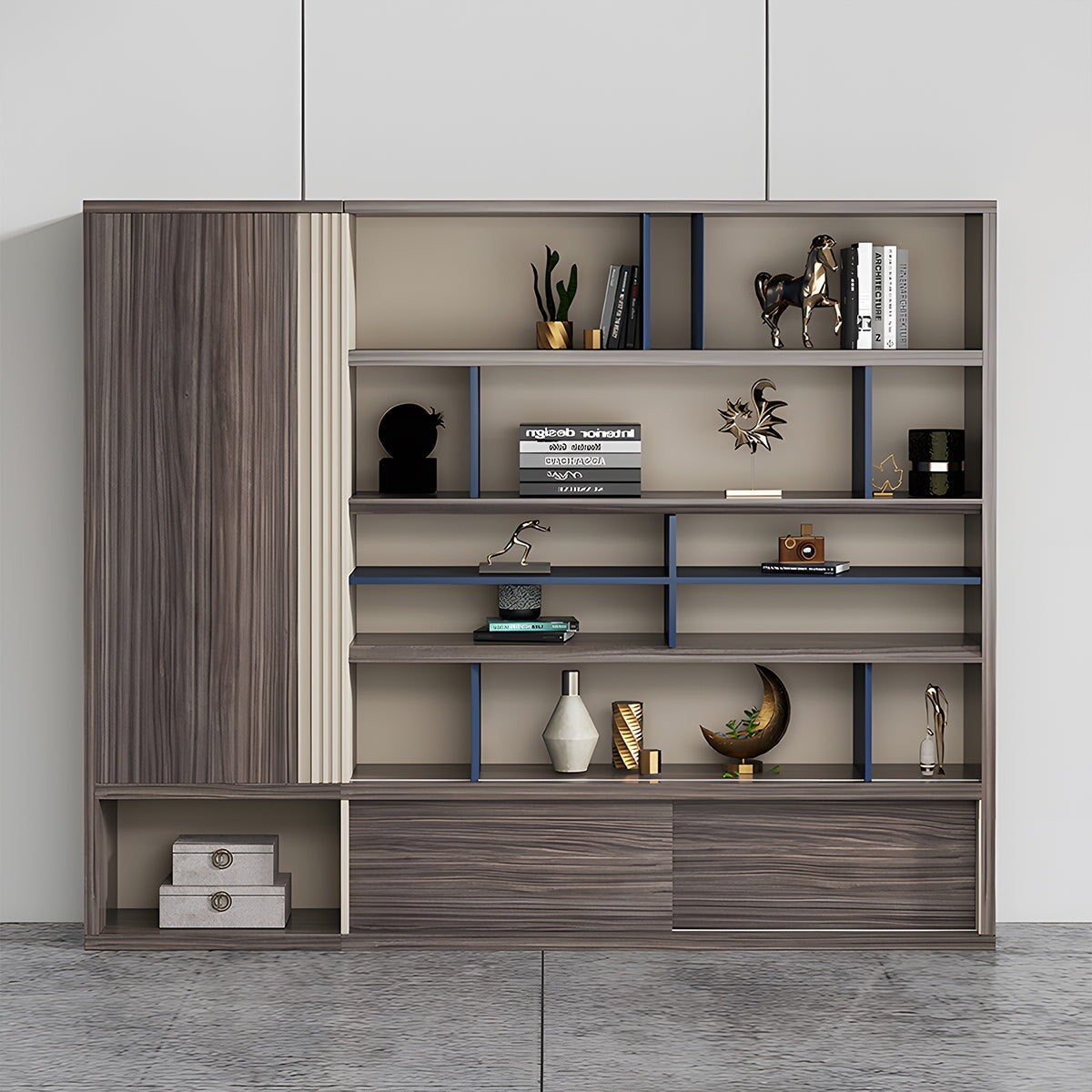 櫃子 大容量辦公櫃 文件櫃 木質書櫃 文件收納架 三聚氰胺板 分類收納 胡桃木 SC-A12