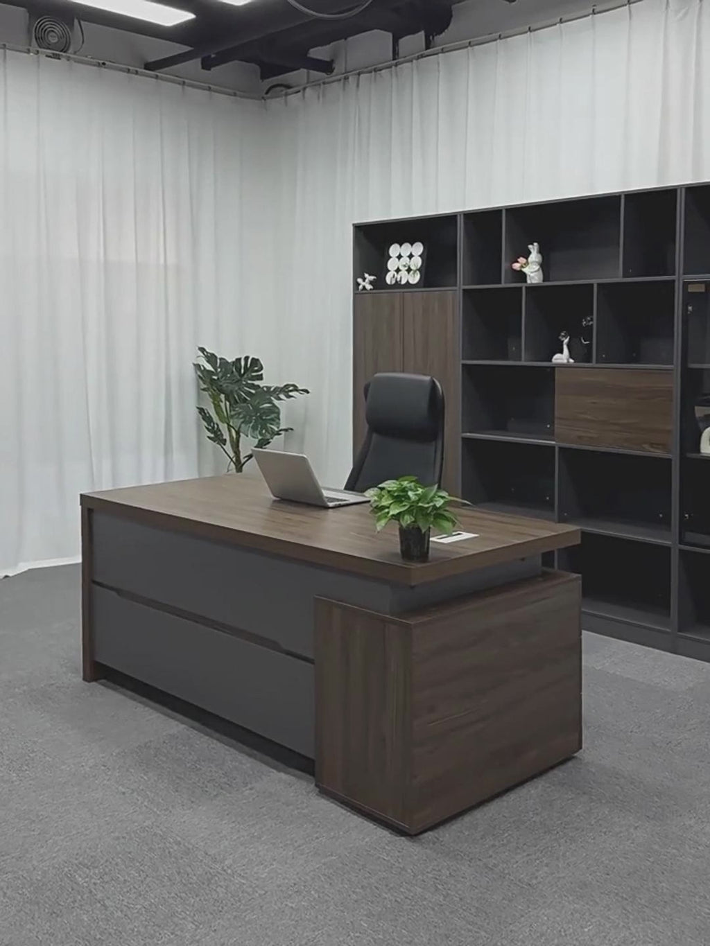 老闆桌,主管桌,主管家具,附抽屜,PC收納,圓柱鎖,背板,接線盒,簡約 ED-A50